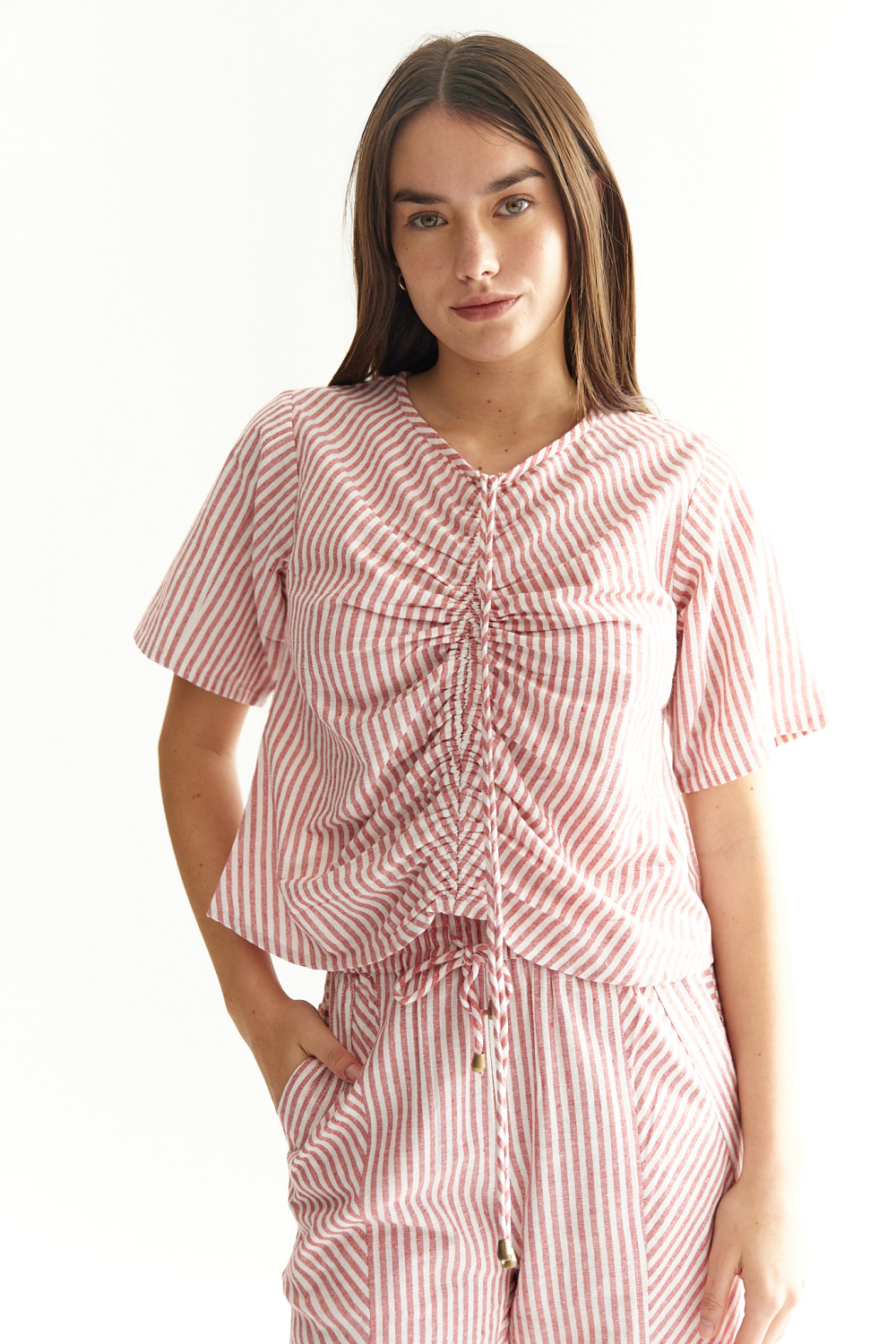 Blusa 100% lino de algodón con su jareta delantera que genera frunce y movimiento! Divina!