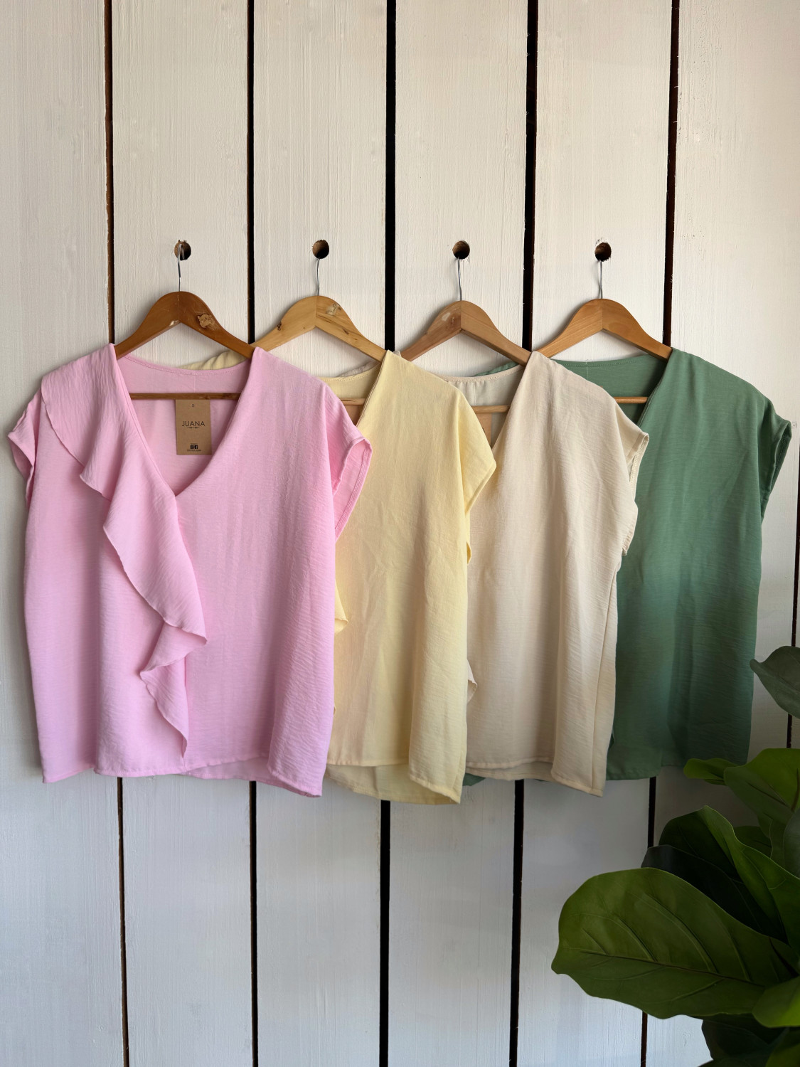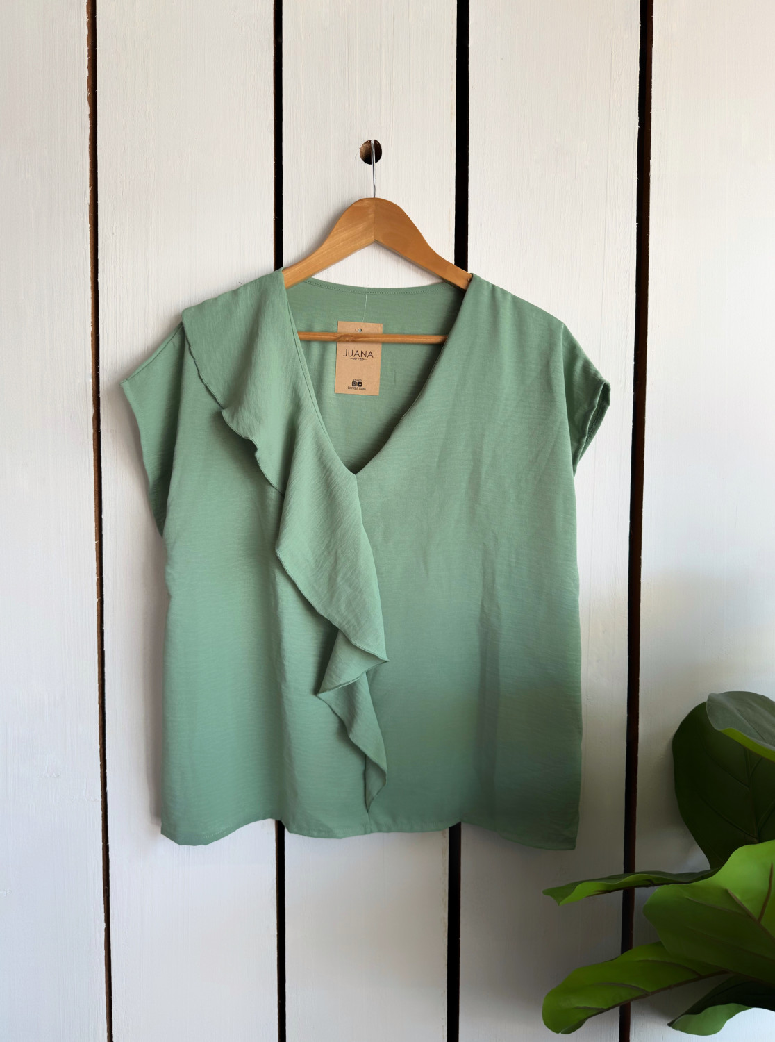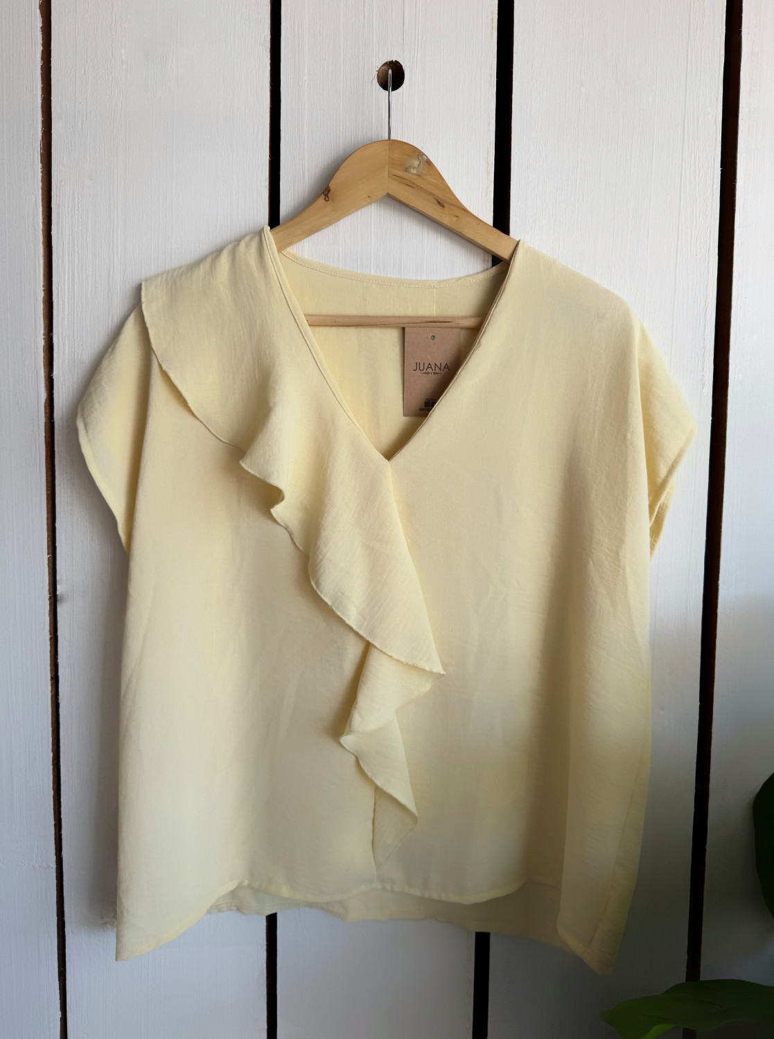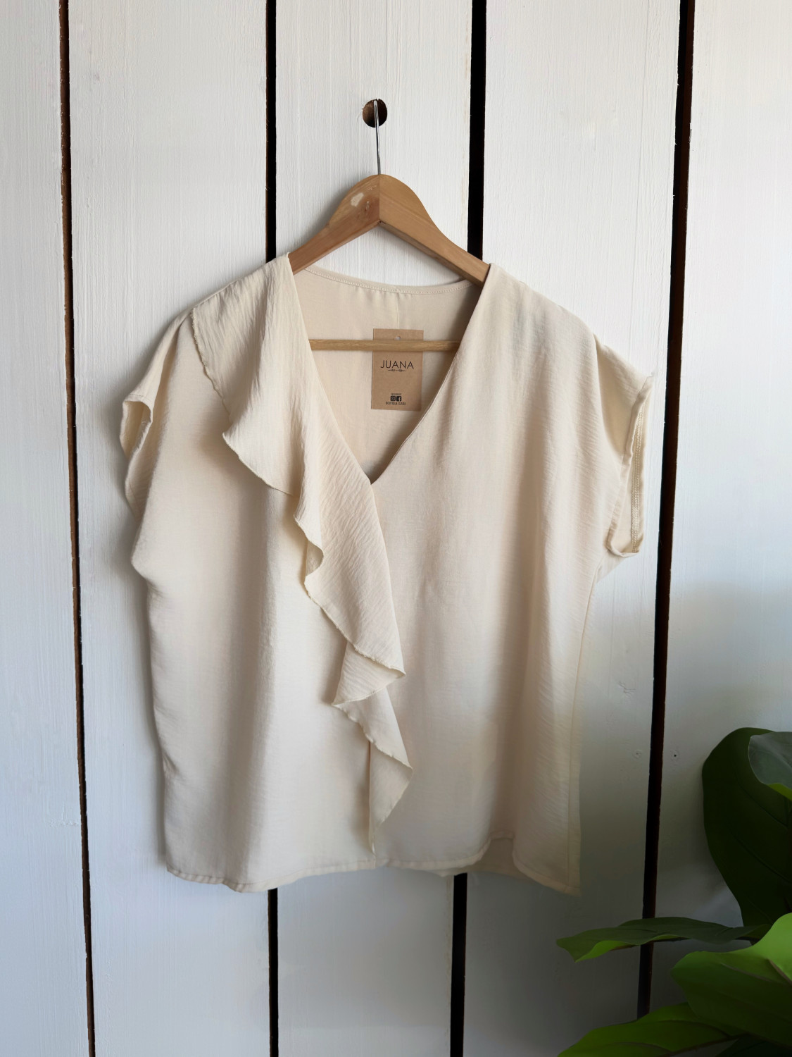 Blusa de crepe con voladito en su delantera que le agrega movimiento! Un básico divino!