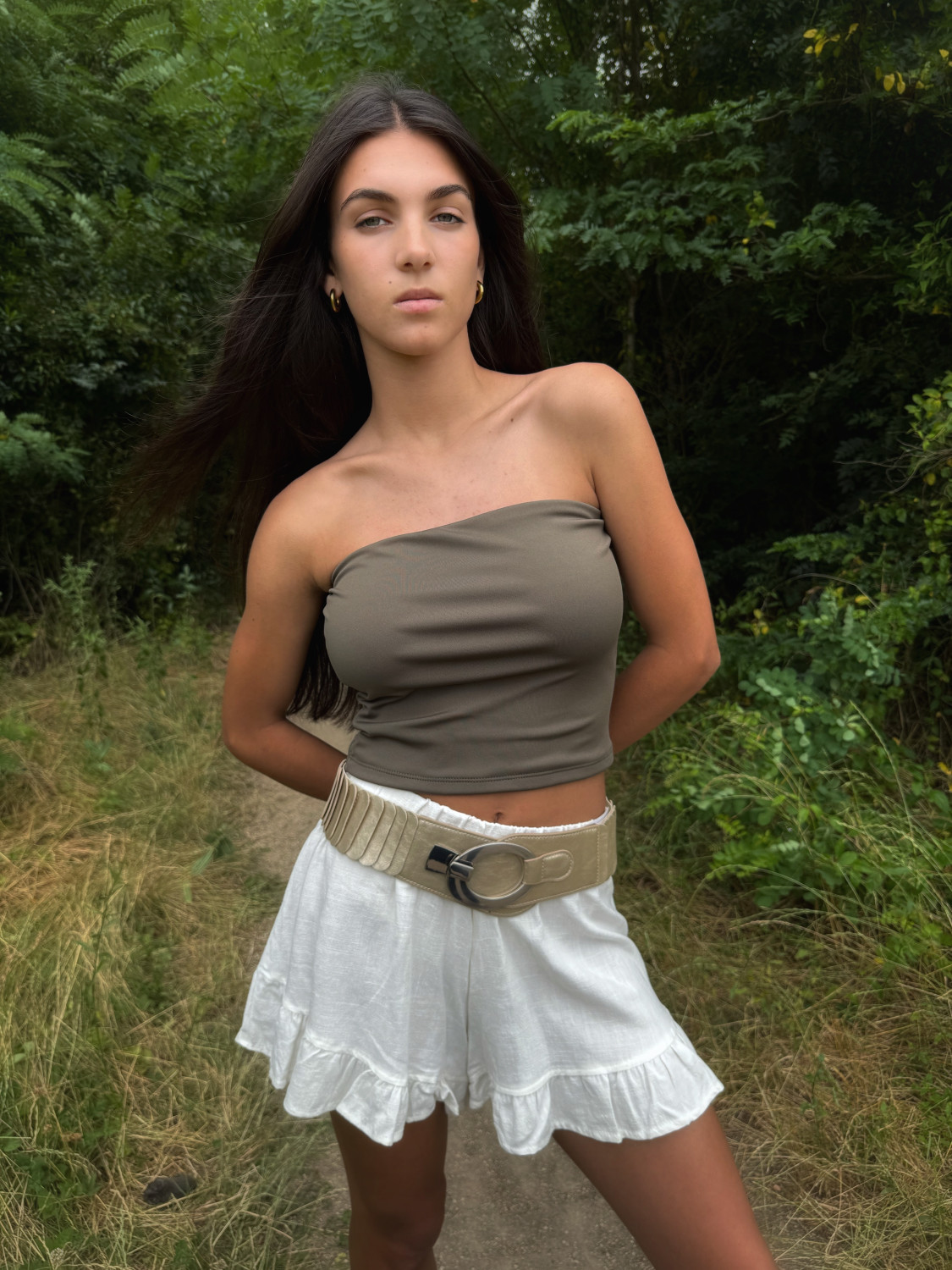 Short blanco con pretina elástica y voladitos en ruedo, muy verano! divino!