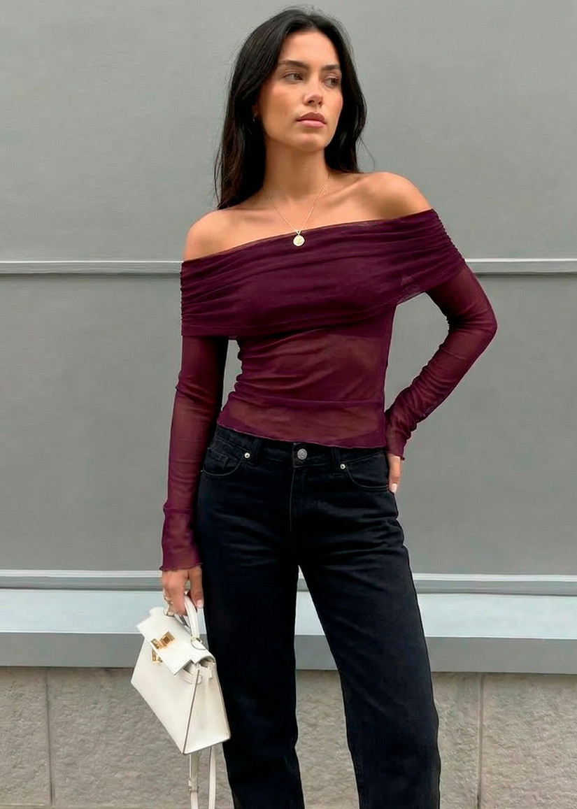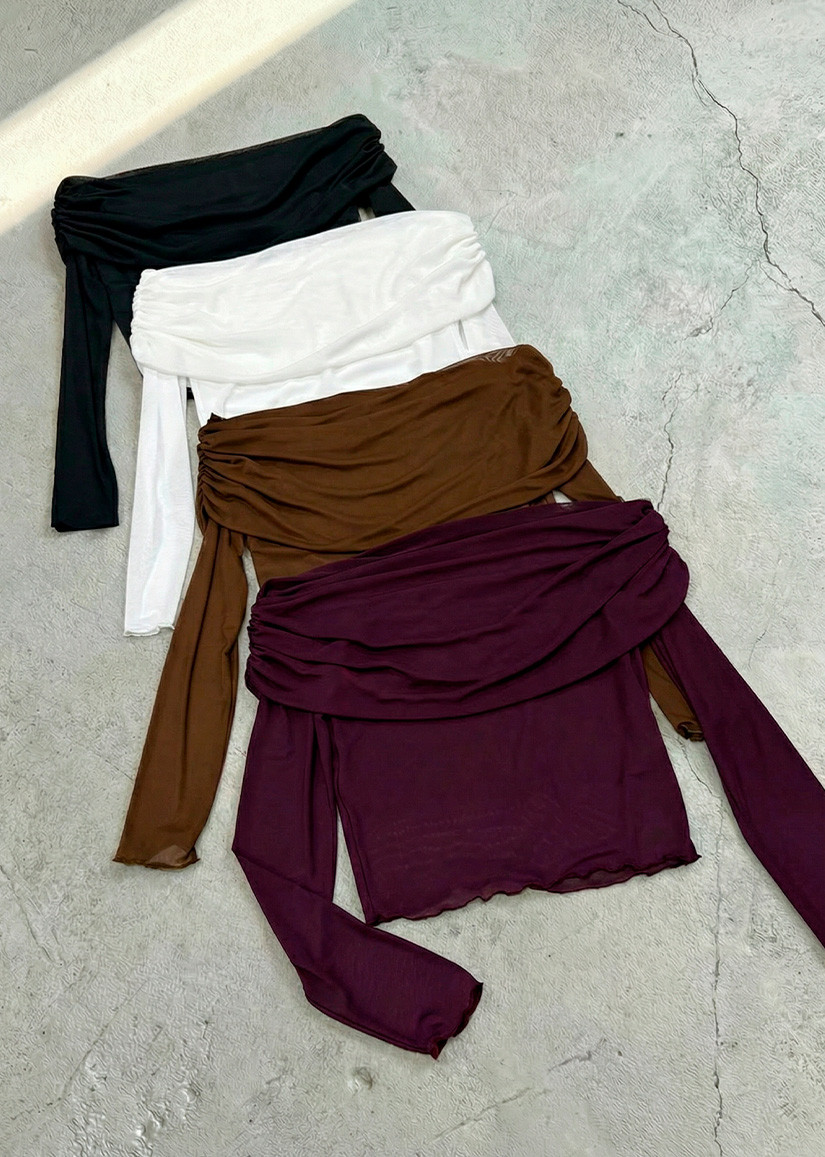 Top off shoulder de manga larga realizado en tull, divino!