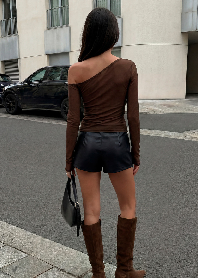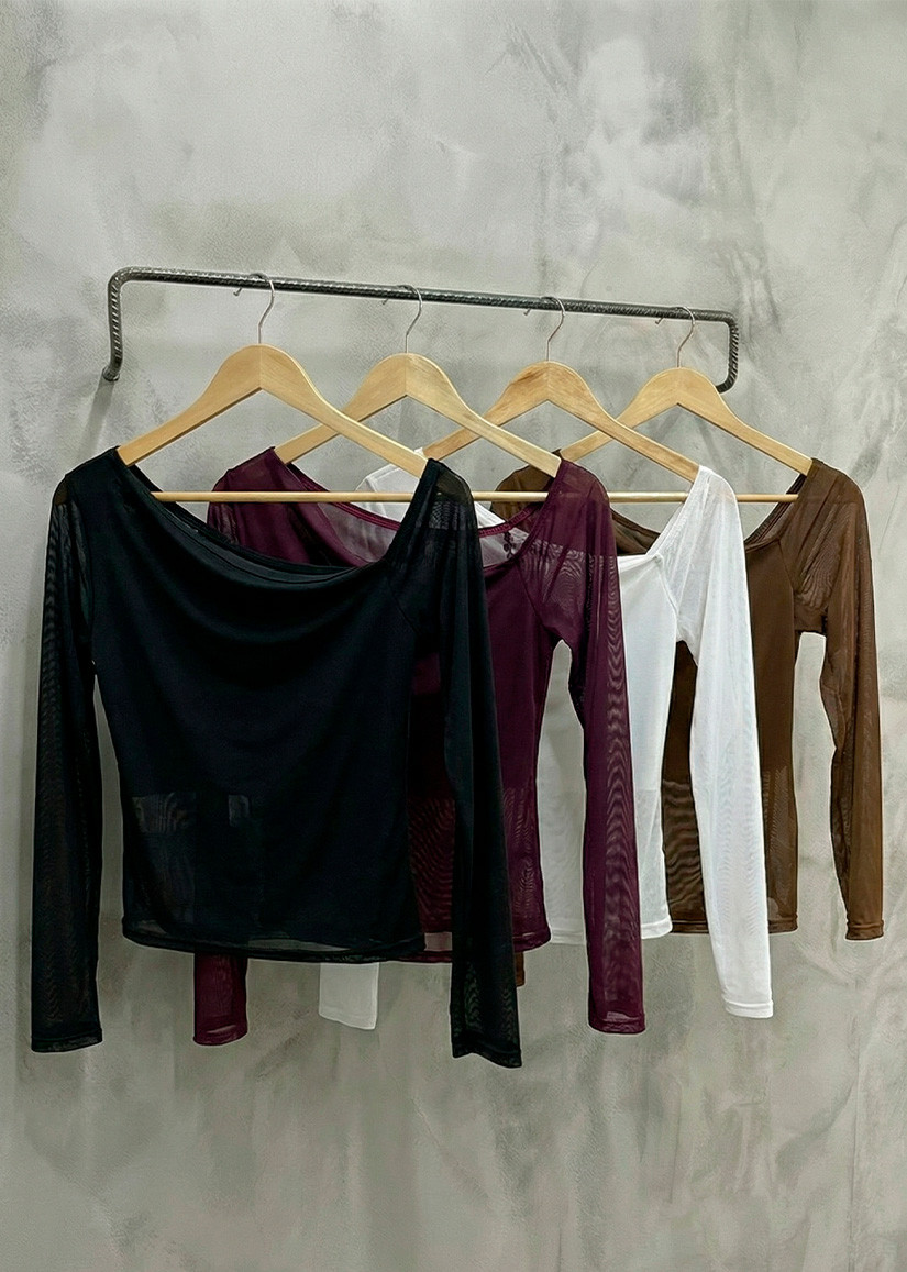 Top asimétrico de manga larga, realizado en tull, muy tremendo!